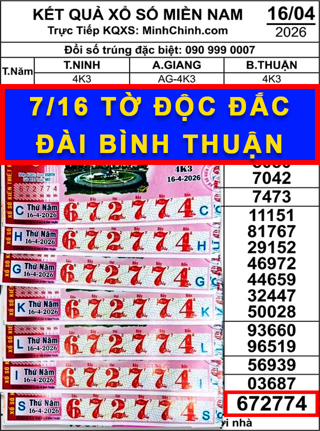 Theo thông tin từ đại lý vé số Tùng ở phường Xuân Hương – Đà Lạt, những tờ vé may mắn có dãy số 672774 thuộc đài Bình Thuận mở thưởng ngày 16/4 đã trúng giải độc đắc. Điều đáng chú ý là toàn bộ 16 tờ vé này đều thuộc về 7 người cùng sinh sống tại Lâm Đồng.