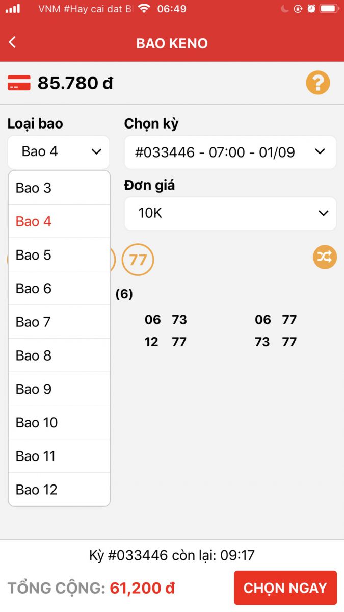 Chọn loại bao từ 3 => 12 .