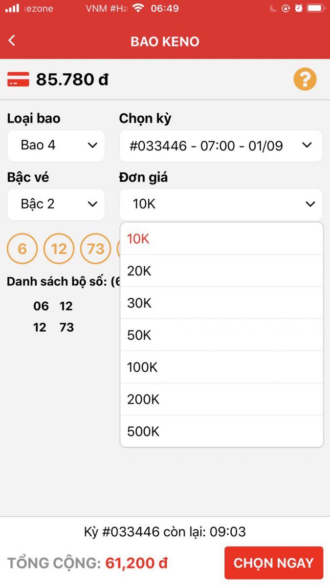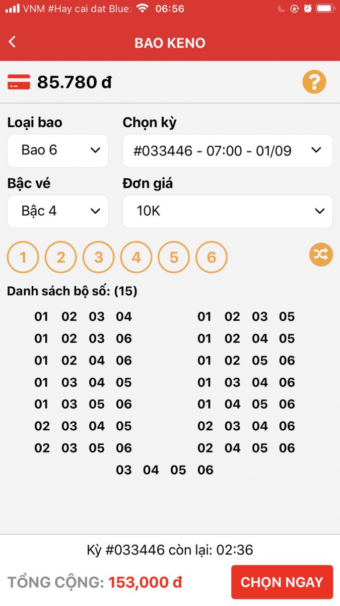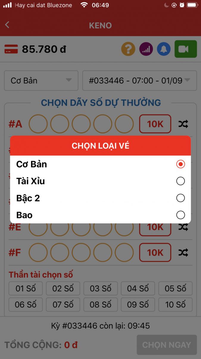 VESOONLINE cập nhật thêm tính năng HOT đó chính là BAO KENO