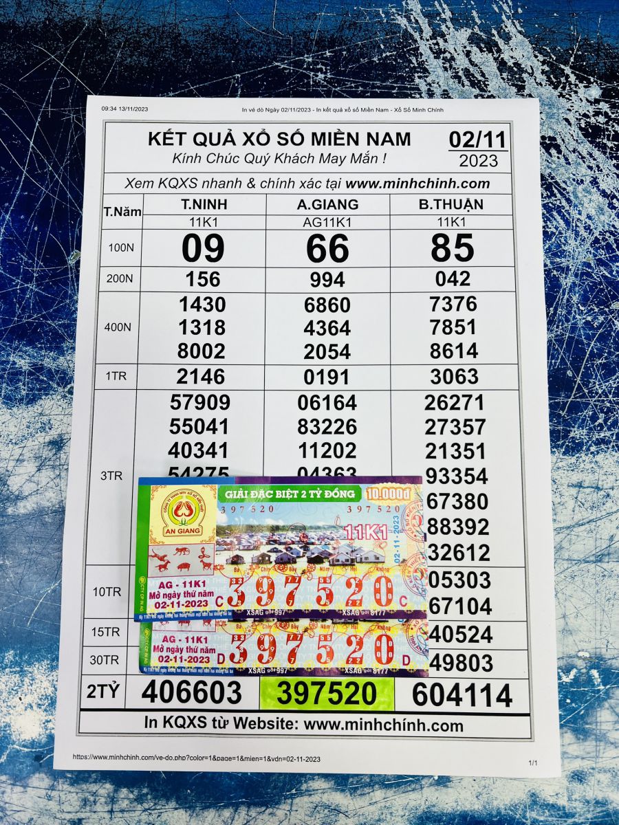 Trưa ngày 13/11, Dịch vụ đổi số trúng tại công ty Xổ Số Minh Chinh 229 Nguyễn Văn Nghi, P7 đã kiểm tra và dổi thưởng 2 chiếc trúng độc đắc lên tới 4 tỷ đồng đài An Giang ngày 02/11 cho chị N.T. T.