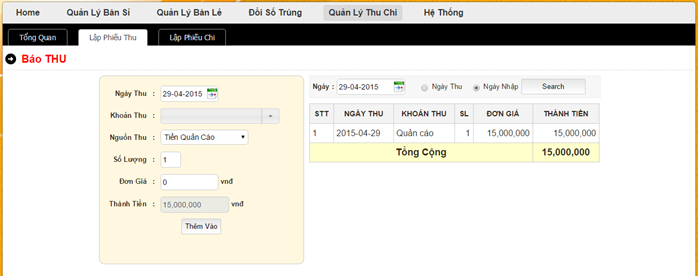 2) Nhập Thu