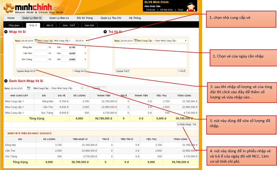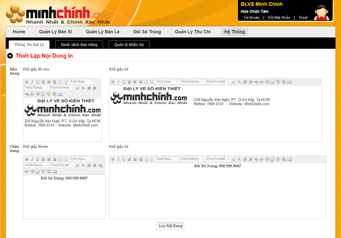 PHẦN MỀM QUẢN LÝ ĐẠI LÝ VÉ SỐ - MINH CHÍNH