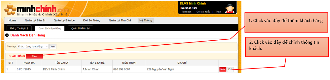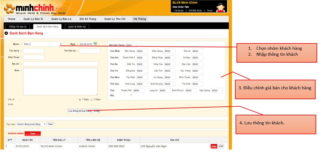 Khách hàng được phân thành 4 loại: Nhà cung cấp , Đại lý , Bán Dạo, Điểm bán Lẻ của đại lý sử dụng phần mềm.