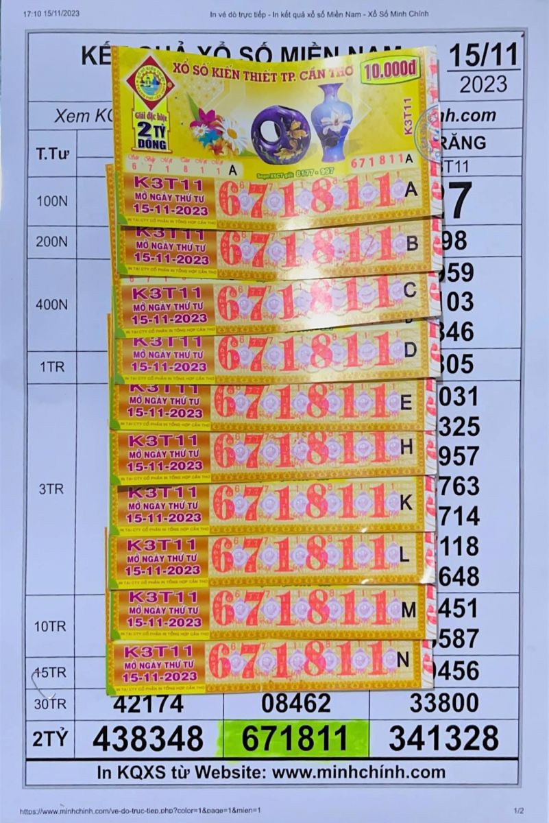 Ngày 15/11/2023: Đổi Số Trúng 10 Tờ Giải Đặc Biệt Tại Xổ Số Minh Chính