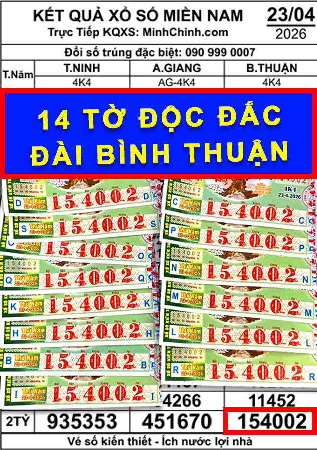 Đáng chú ý, vé số Bình Thuận mở thưởng chiều 23/4 có giải độc đắc mang dãy số 154002 được xác định trúng tại TP.HCM. Nơi đổi thưởng cho nhiều khách hàng trúng tổng cộng 14 vé độc đắc là đại lý vé số Kế Đáo ở phường Bến Thành.