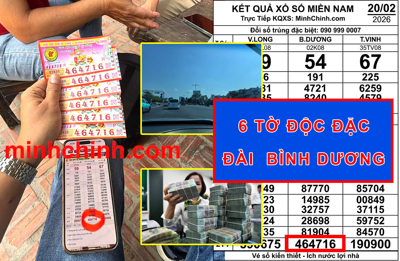 KQXS Bình Dương 20/02/2026: Đại Lý Vé Số Minh Chính Đổi 6 Tờ Đặc Biệt 464716 (12 Tỷ) Dương 20/02/2026 (12 Tỷ)