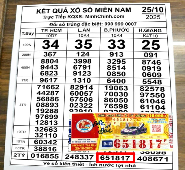 Tờ vé số mua rồi quên dò của người phụ nữ trúng độc đắc xổ số miền Nam ngày 25 tháng 10