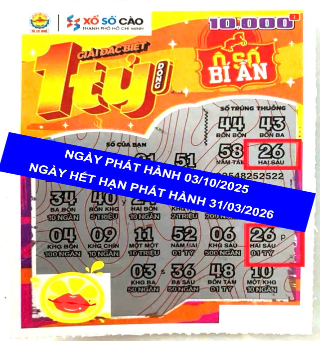 Thêm tờ vé trúng giải đặc biệt xổ số cào TP.HCM vừa xuất hiện