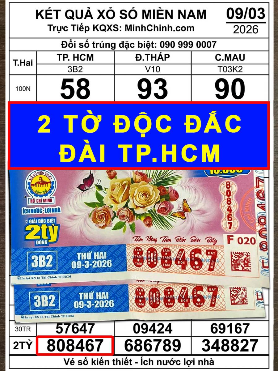 Vé số TP.HCM 808467 trúng 4 tờ độc đắc