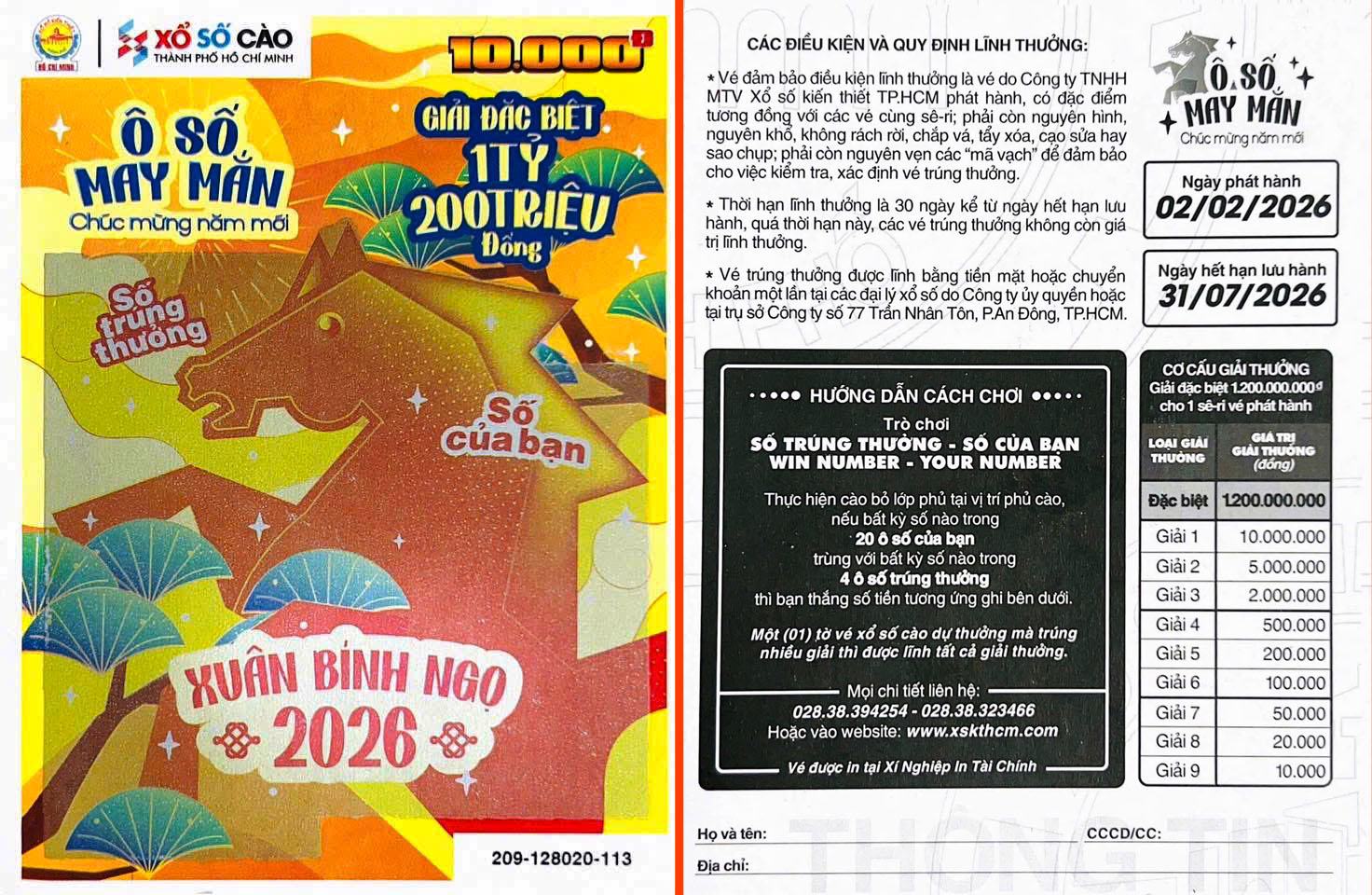 Hòa trong không khí hân hoan chào đón Xuân Bính Ngọ 2026, Công ty TNHH MTV Xổ Số Kiến Thiết Thành Phố Hồ Chí Minh chính thức giới thiệu dòng vé cào Xuân 2026, mang diện mạo mới rực rỡ, ý nghĩa may mắn đầu năm cùng cơ cấu giải thưởng hấp dẫn.