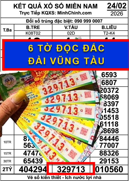 6 vé Vũng Tàu 329713 trúng độc đắc