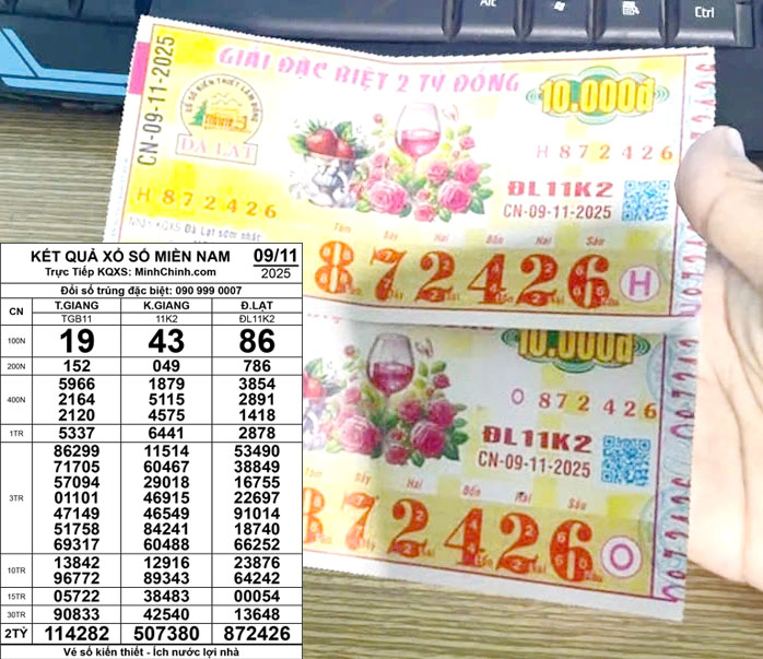 Kết quả xổ số miền Nam ngày 9/11 tiếp tục ghi nhận nhiều tấm vé may mắn trúng giải lớn tại Cần Thơ và Vĩnh Long, cho thấy vận may vẫn đang “ghé thăm” hai địa phương này trong nhiều kỳ liên tiếp.